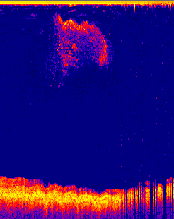 右上のモヤがカタクチかキビナゴなんですが,駆け上がりについているのはもう少し大きな魚だと思います.ミミズみたいなやつですね.なんでしょうね〜・・・・.わかりません.