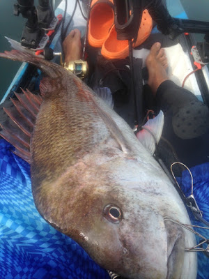 メモリアルなフィッシュおめでとうございます!カヤックだと取り込んだ後、股の間に乗せて絞めたりするから、こんなサイズの鯛にユムシと勘違いされて股間を噛まれたら大変ですね(;゜0゜)