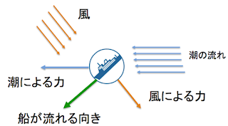 潮流の流れる向きに船は流れようとしますし,風下に向かって船は流れようとします.