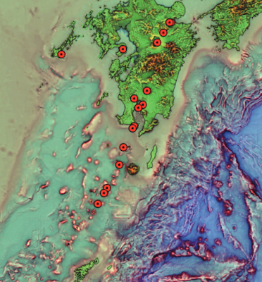 で,だいたい,日本>九州>屋久島 このあたりのスケール感を考えるにあたって,海底地形図というのは一つのツールとして良いと思っています.