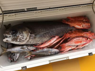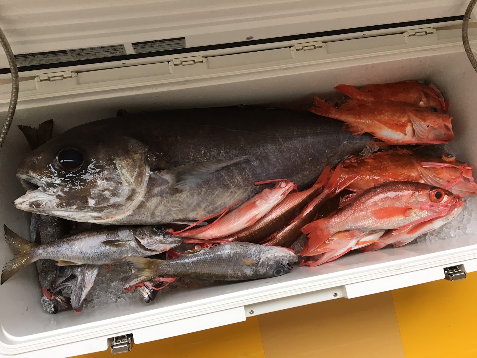 アカムツ×2,クロムツ×5,メダイ×1,ユメカサゴ×1,ウッカリカサゴ×2.ソコホウボウやハチビキも・・・.