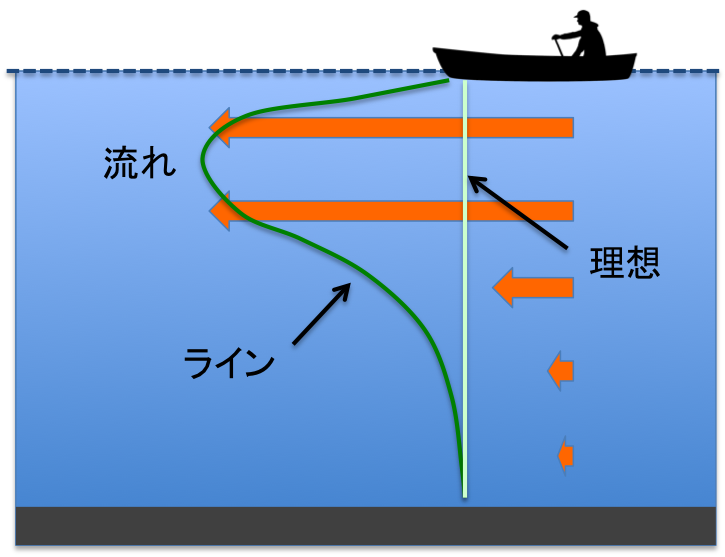 これは色々意見があるかもしれませんが,バーティカルな立てた釣りでもドテラのようなラインが斜めになる釣りでも私個人としては理想的な状態というのはラインが一直線になった状態だと思っています.