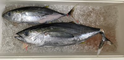 ※潮氷につけていたので,魚が黒くなったり目が白くなったりしていますが,ちゃんと新鮮で刺身でも食べられます.