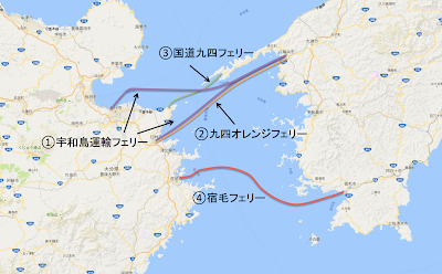 九州 四国間を結ぶフェリーの乗り場・時刻表(旅行,釣り遠征計画のために)