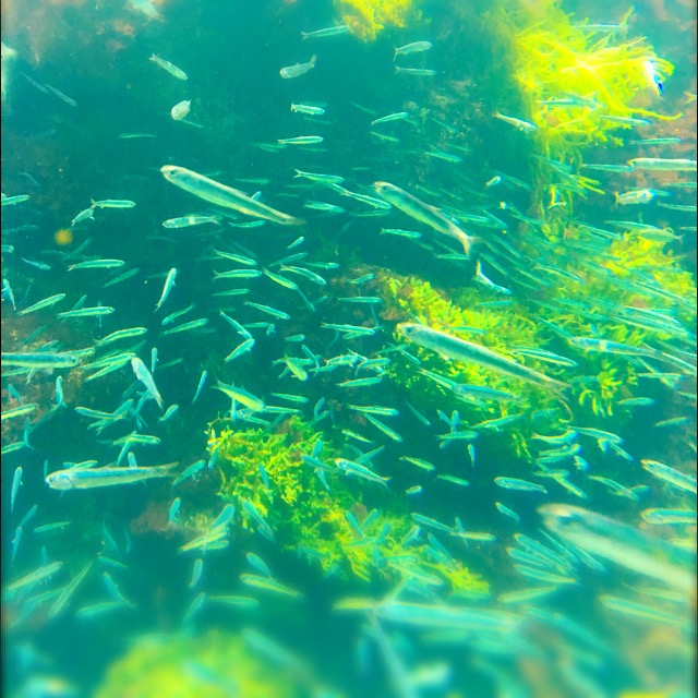 カタクチイワシの水槽を見ながら魚探の画面を想像したり・・・