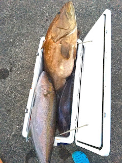 釣果:クエ20.7kg,ヒレナガカンパチ9.7kg,メダイ,シロダイ.