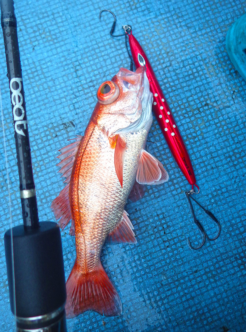 アカムツジギングをめちゃくちゃ難しいジギングのように言う方もいらっしゃいますが,食うときは誰でもジグ落とせば食います・・・そういう魚だと思います.面白いターゲットではありますが,釣るのが難易度高い魚ではないと思いますので,やたら難しいほうに考えず,自由な発想で気軽にチャレンジしていいと思います!