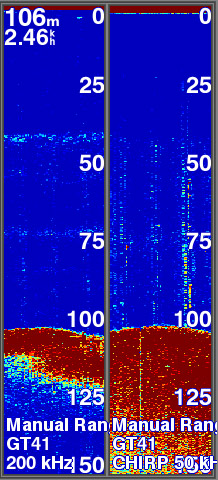 ちなみにですが,50m〜75m付近に映ってるのは魚です.