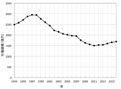 もう1年ぐらい経ったということで,レジャー白書2017が出版されていたので,2016年の増減をご紹介したいと思います.