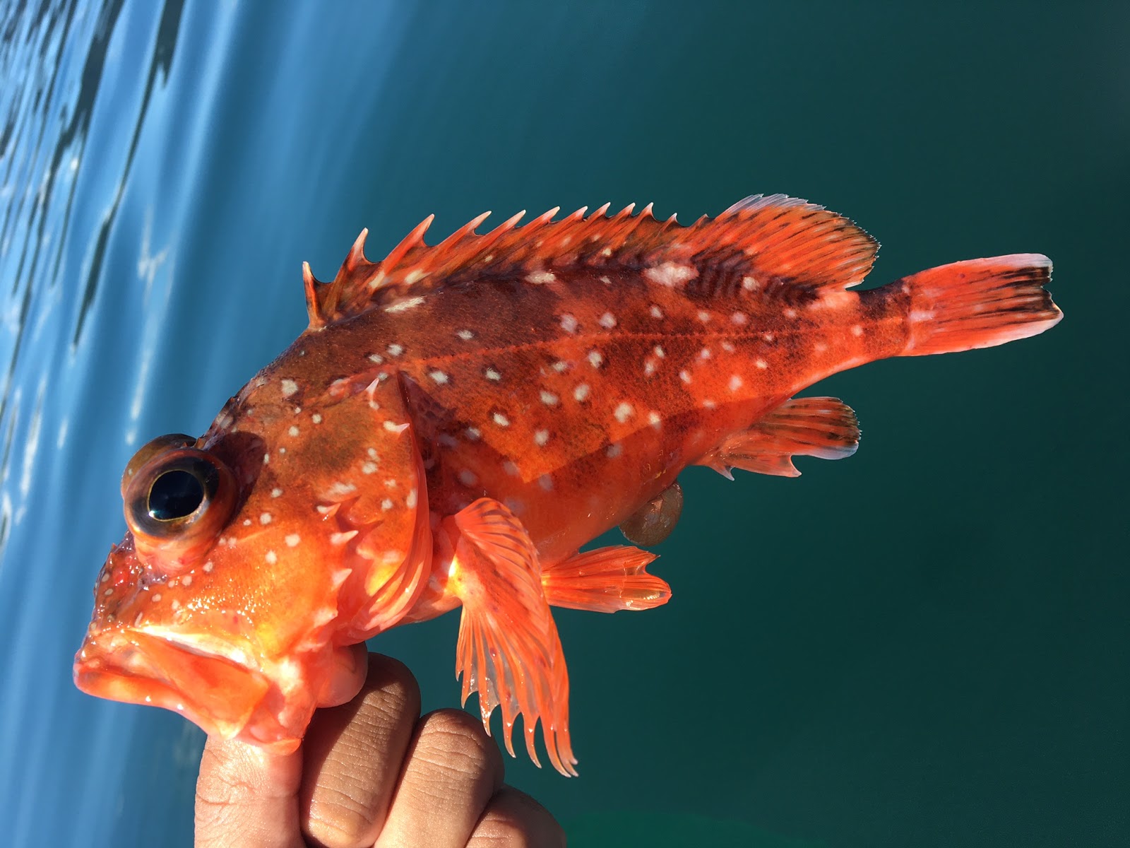 とりあえず,今日まだ見てない深場の方の地形を見に行くと,結構な海底凹凸があり,ちょっとおもしろい感じにはなっています.怪しい場所をランガンで探っていきます.カサゴを1匹追加.