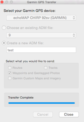 で,Select your Garmin GPS deviceにちゃんと自分の魚探が表示されていることを確認します.