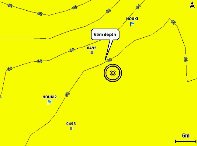 で,ここ,だいたいの場所は釣ってる時にマークを打ってるんですが,精密にマークを打っておきたいと思います.なので,ここを例にして,Homeportで編集したポイントマークを魚探に転送するデモをやりたいとおもいます.