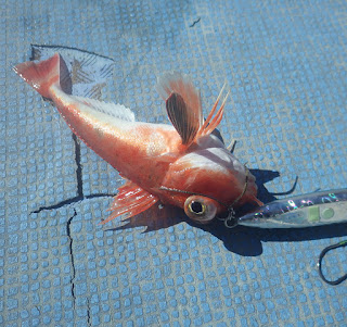 釣果:レンコダイ×2,ウッカリカサゴ×1,エビスダイ×1,タチウオ×1,ソコホウボウ×1,ツノザメ系×1