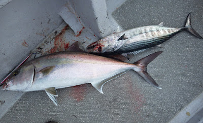 私の釣果:カンパチ×2(6kg弱,5kgちょっと),ヒレナガカンパチ×4(最大4kg),アカヤガラ×2,スマ,ハガツオ,ブリ×2(2本とも9kgちょっと )