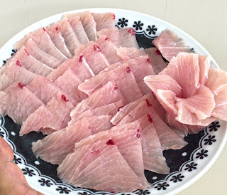 職場の昼飯もカンパチ刺し身!夜飯もカンパチ刺し身! ...あと炙りが絶品でした.