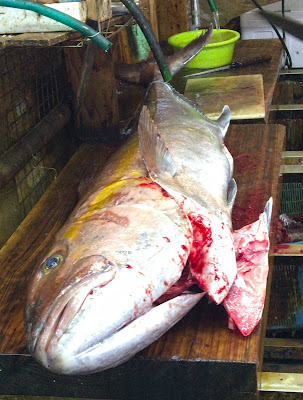 次にデカイカンパチが釣れたら絶対食べようと思っていたので, 入念に血抜きしてもらいます.