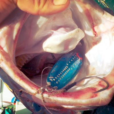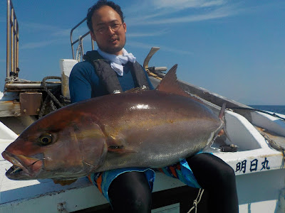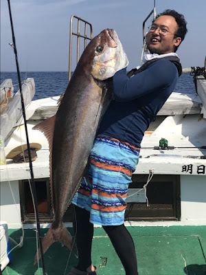 それで獲れた前日の150kgオーバーのサメであり,今回のこのカンパチ.