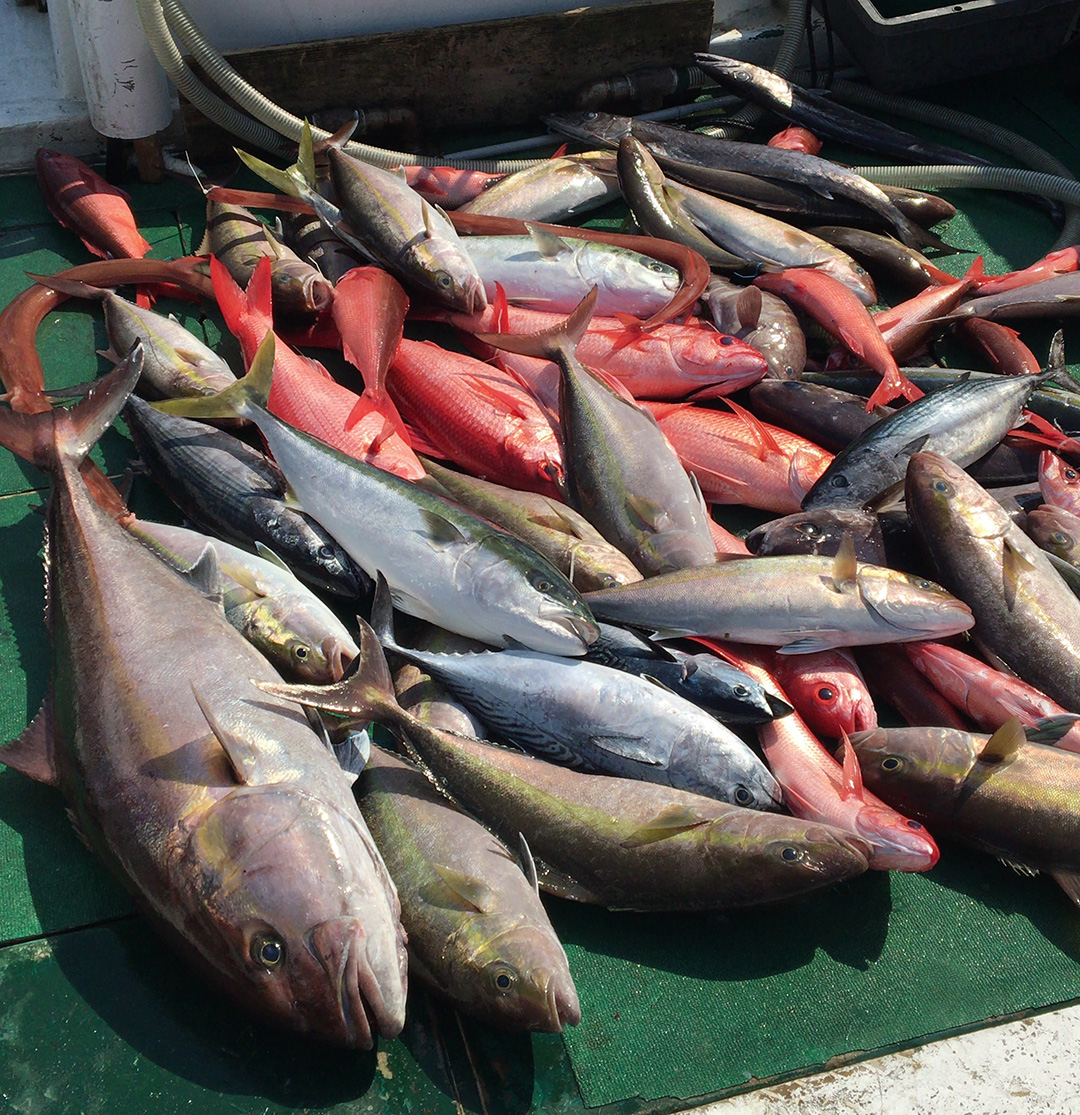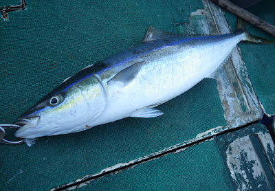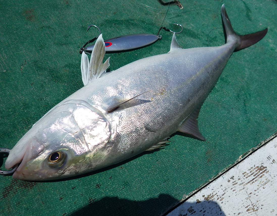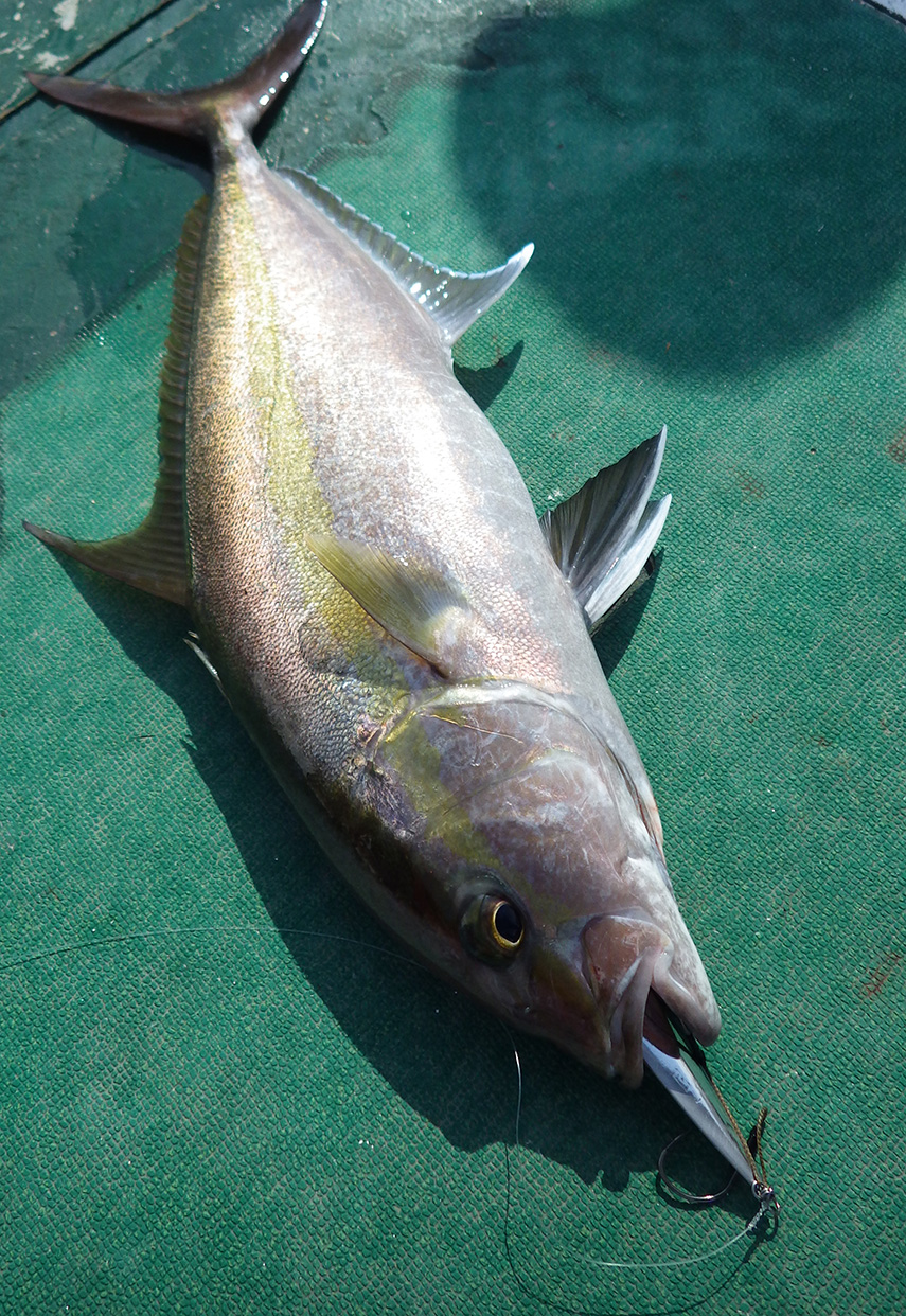 二日目釣果:カンパチ×2(最大,29.5kg),ヒレナガカンパチ×1,ツムブリ,スマ