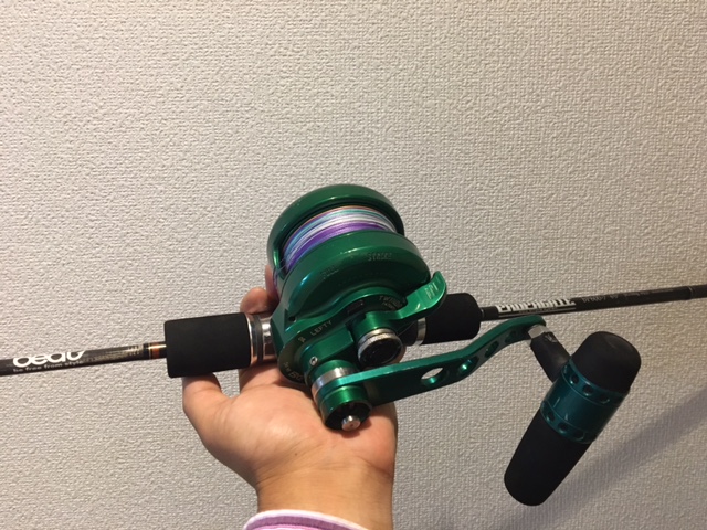 竿とリールの組み合わせはプロパゲート7番にグリーン,マニアフェローズにレッド.どっちも3号タックルを軸にします.