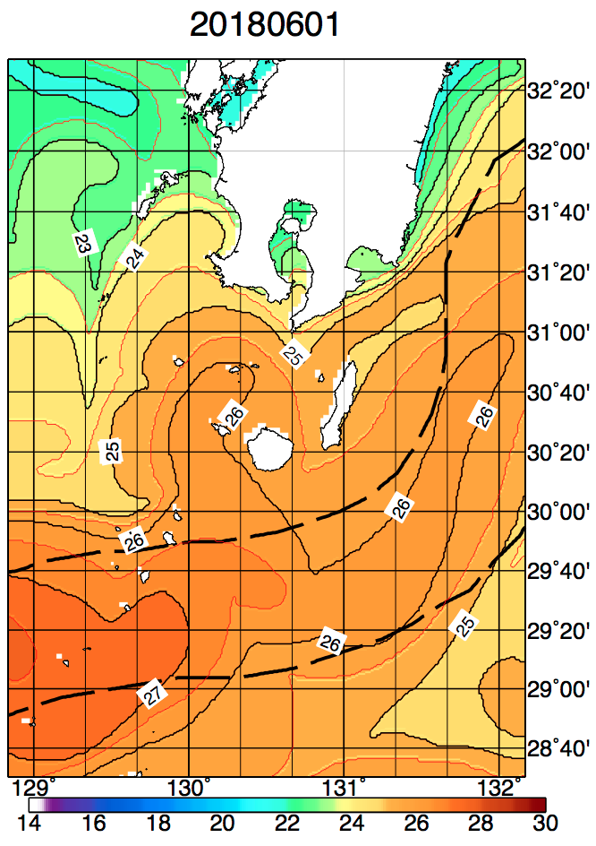 トカラ海域は2月〜3月ぐらいが水温一番低いのですが, 宇治,草垣方面は黒潮が下がる5月ぐらいでガクッと水温が落ちたりします.こういうところが鹿児島の難しさかと思ってます.