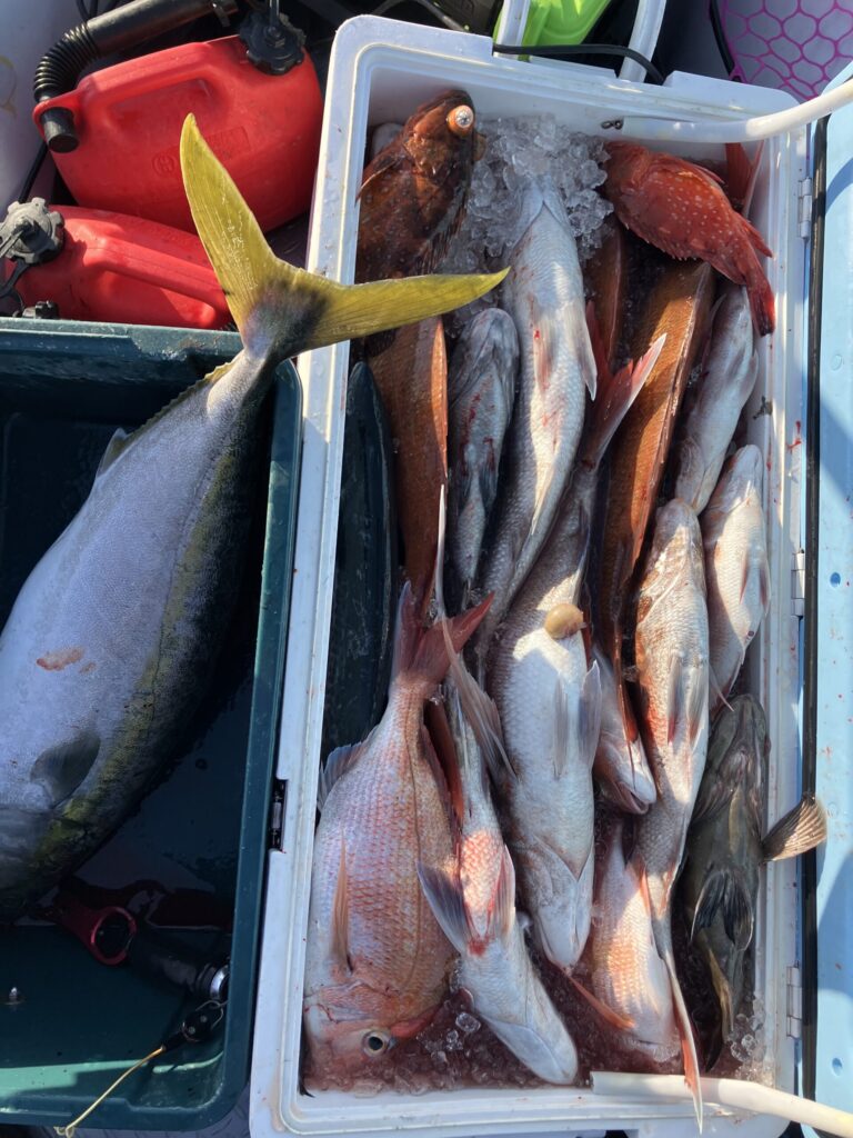 サゴシ1,マハタ1,ブリ2.真鯛21,シマセトダイ1,レンコダイ6,ウッカリカサゴ4