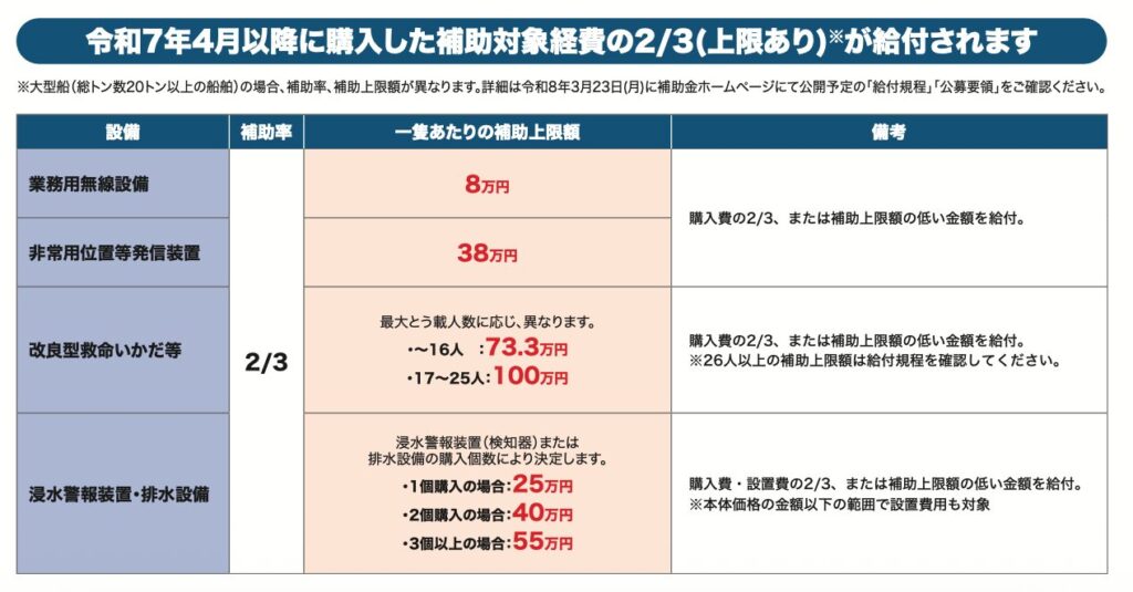 遊漁船の安全・安心確保推進事業補助金です※こちらは遊漁船のみ対象の補助金です.