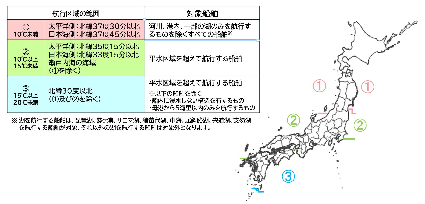 これらの地域のこの指定時期だと,いかだ搭載義務もしくは別途の処置が必要になります.